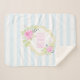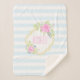 Rosas Rosa Bonitas de Monograma, Blueberry Sherpa Blanket. Monograma floral rico com rosas, folhas e mirtilos. Muito ornamentado e alegre, com um aspecto ligeiramente vitoriano ou chique. Cores do Pastel: rosa, azul, verde. Listras azuis claras. Nome personalizado cor-de-rosa e amarelo-ouro.