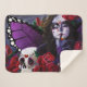 Cobertor Sherpa Rosas vermelhas de crânio de açúcar Roxo