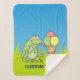 Sapo sorridente rouba um cone de sorvete com a língua. Texto personalizado.