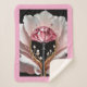 An imaginary flower design in pink and white covers this lovely Sherpa Blanket.