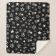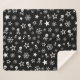 Crânio e bósforos com flocos de neve bonito e estrelas contra fundo preto.