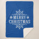 Este cobertor quente e aconchegante do Sherpa é mostrado com um grande impressão de floco de neve Feliz de Natal em fosco Branco sobre uma cor de fundo Azul de Sapphire. Personalize este cobertor ou comprar como está. Imagem do stock freepik.com all-free-download.com