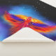 Fiery phonix voando pelo espaço em uma nuvem nebulosa azul e roxa num céu noturno estrelado. Um aglomerado de estrelas espumante forma a constelação de fênix. Orientação horizontal. ♡ Idyllfire