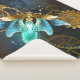 Barbeiro véu com asas transparentes azuis e lâmpada verde sobre fundo vestido, marrom, texturizado. Estilo Steampunk.