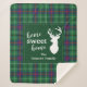 Um cobertor de natal doce e doce lar que você pode personalizar facilmente clicando no botão "Personalizar", apresentando a silhueta de veados e o clã Duncan tartan em verde e cheque roxo. Perfeito para suas noites confortáveis durante os feriados. Faz um presente de excelente