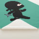 Ninja de desenho animado bonito vestido de preto está correndo enquanto segura uma estrela lançadora.