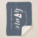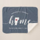 Mostre algum orgulho do estado doméstico com este cobertor giro azul de lançamento apresentando "home" em letras brancas de escrita de caligrafia com um mapa da silhueta do estado de Vermont em pé para a letra "O". Um dentro de ilustração do coração vermelho no mapa do estado completa o design; você pode mudar a posição do coração para sua cidade natal abrindo a ferramenta design e arrastando a forma do coração para seu lugar favorito. Personalize com a sua cidade natal, o nome da família e o ano estabelecidos para criar um presente perfeito e memorável de inauguração ou adição à sua nova casa.