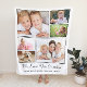 Celebre a vovó com este cobertor branco personalizado com uma colagem fotográfica de suas pessoas favoritas. Você pode personalizar com seis fotos familiares de netos, familiares, animais de estimação, etc, e personalizar a expressão para "Eu te amo" ou "Nós te amamos", e se ela é chamada de "vovó", "vovó", "mãe", etc. Você também pode adicionar os nomes dos netos ou netos.