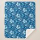 Sherpa Blanket em uma vintage, William Morris impressão floral de lírios estilizados e irlandeses, digitalmente melhorados e coloridos, em tons de azul-céu e branco sobre um fundo azul-indigo escuro, colorido digitalmente e aprimorado
