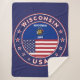 Crachá de Wisconsin com bandeira de Wisconsin e bandeira dos EUA, cores, forma arredondada. Emblema de Wisconsin. Selo de Wisconsin. Coleção dos Estados Unidos.