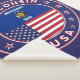 Crachá de Wyoming com bandeira de Wyoming e bandeira de cores dos EUA, forma arredondada. Emblema de Wyoming. Selo de Wyoming. Coleção dos Estados Unidos.