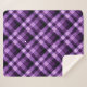 Um cobertor sherpa de tamanho médio com um belo padrão de xadrez diagonal design em roxo de ameixa.