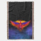 Fiery phonix voando pelo espaço em uma nuvem nebulosa azul e roxa. O cintilante aglomerado de estrelas que coroam a cabeça mítica de ave forma a constelação de fênix. Orientação vertical. ♡ Idyllfire