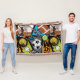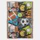 A bold, energetic sports collage featuring basketball, football, soccer, tennis, and baseball elements with dynamic typography like “Big Game,” “Goal Time,” and “Winner,” set in bright, high-contrast colors.