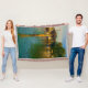O brilho quente do sol de configuração acende o trabalho de arte por ZoeSPEAK neste cobertor de lama. É feita a partir da fotografia original de Zoe de uma paragem de refresco numa marina ao longo da costa do golfo da Flórida. Algumas barbatanas relaxam e desfrutam da visão da água azul ondulante como ela reflete a cena.