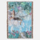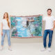 Uma realidade da 5ª dimensão vista através de um portal de sonho aberto onde o paraíso encontra uma paisagem surreal azul-esverdeada com o relógio S Dali e uma mulher pintando o céu. a água escorrendo do relógio com o golfinho de metal limitado apenas pela nossa imaginação com foco em plantas exuberantes, flores coloridas ou animais encontrados em climas tropicais.