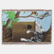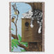 Um gato de mesa bonitinho está dormindo com um pinto de pássaros de madeira. As aves que lá residem não estão satisfeitas