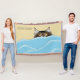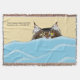 Cobertor Tabby Cat Peeking Blue Funny