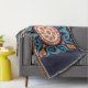 Um intricado design de azulejo inspirado em boho em tons azuis, vermelhos e terras quentes. Projetado para uma aparência vintage-encontra-moderna, ideal para portas copos, arte de parede, camas e outros produtos de aparência moderna.