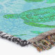 Tartarugas verdes tribais com padrão de fundo coral para os projetos de costura de Y que são temas costeiros ou de praia.