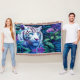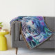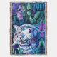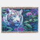 tigre branco de olhos azuis em folhas tropicais e flores roxas AI Art por minx267