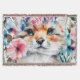 Bela pequena floral. Design adorável para crianças, decoração de quarto, crianças acessórios da escola, suprimentos de quarto, design adorável para presentes de chá de fraldas para a menina, presentes de chá, decoração de berçário. Design amorosa romântica para mulheres meninas que são animais românticos e amamLinda pintura de cor d'água de flores e um animal fofo
