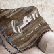 Mostre orgulho de seu estado natal com este lindo cobertor rústico de madeira falsa com a palavra "home" em letras brancas em caligrafia, com um mapa em silhueta do estado da Virgínia no lugar da letra "O". Um coração rosa ilustrado dentro do mapa do estado completa o design; você pode mudar a posição do coração para a sua cidade natal ao abrir a ferramenta de design e arrastar o coração para o seu local favorito. Personalize com a sua cidade natal, nome da família e ano de fundação para criar um presente perfeito e memorável de inauguração ou um adorno para a sua nova casa.