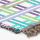 Este cobertor tem uma design de Arte de uma xadrez feita de dois tons de turquesa, dois tons de roxo e dois tons de verde.