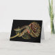 Cartão do cobra do pitão da bola. Serpenteie coiled em torno de uma rosa vermelha da guarnição do ouro no fundo preto.