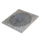 Caracteriza uma grelha antiga do cobrir de câmara de visita nestled em uma estrada velha do cobblestone. Rústico e refinado com encanto do Velho Mundo. Este caracteriza um cervo.