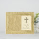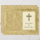 Um cobrir elegante para acompanhar um programa ou menu, com cruz cristã, borda fina de ouro e papel vintage amassado.