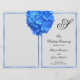 Cobrir de programa floral azul dobrado para uma cerimônia de casamento. Flor azul de hydrangea bonito na frente com texto preto que inclui um grande monograma inicial no topo. Os quadros azuis correspondentes incluem o texto e o que será a parte traseira do programa. O papel de 8,5 x 11 polegadas tem upgrades opcionais e é impresso em um lado apenas, para dobrar após a compra.