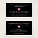 Cards de código de cupom que deslizam nos pacotes que você envia aos seus clientes, onde você pode adicionar informações sobre o desconto que você lhes oferece na próxima ordem. Uma borda branca enquadra a placa de inserção de desconto preto que tem um coração rosa giro e fontes encantadoras contra um fundo preto. No outro lado do pacote insira o cartão para sua pequena empresa, adicione o nome da sua empresa e as informações de contato.