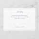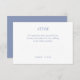 Dê a este cartão o seu toque pessoal. Este cartão de vestimenta chic apresenta 5 pontos em branco que você pode personalizar à mão, usando aquarela ou qualquer outro meio. A frente apresenta uma fonte contemporânea em azul poeirento contra um fundo branco, enquanto a parte de trás inclui um monograma floral branco contra um fundo azul poeirento.
