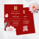 Este convite floral apresenta uma pintura aquosa de uma flor de lótus e um símbolo de felicidade dupla num tom cor-de-rosa correspondente num fundo vermelho. No verso está um código qr digitalizável para o seu site de casamento.