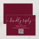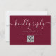 Um simples, cartão de resposta RSVP elegante borgonha com código QR. Projetado por Thisisnotme©