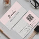 Design moderno, com coloração rosa e cinza. Composição elegante, profissional e sofisticada para um cartão de visita minimalista. Coloração feminina tão principalmente para mulheres. Ícones de mídia social do facebook, instagram incluso, assim como ícone de página da Web, mas eles podem ser removidos, outros carregados no modo de edição. O código QR do marcador de posição também foi incluído. Personalize o código QR. Por favor, personalize frente e verso enquanto o cartão está de dois lados.