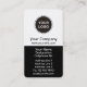 Cartão de visita vertical genérica com logotipo personalizado e campos de texto. Cor de fundo personalizada. Código QR personalizado e IDs sociais no verso.