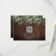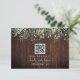 RSVP de Casamento com design de luz de corda verde botânica no topo sobre o fundo da madeira com texto branco na frente e atrás. Personalize o código QR.