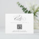 O cartão de RSVP de casamento em letra elegante moderna é a combinação perfeita de sofisticação clássica e conveniência moderna, projetado para tornar o planejamento do seu casamento tranquilo. Este convite apresenta uma letra fluida e elegante que escreve "Responder" de forma sofisticada, capturando o tom formal do seu evento, ao mesmo tempo em que adota a facilidade da tecnologia contemporânea. Com suas linhas limpas e abordagem minimalista, este cartão de RSVP se encaixa perfeitamente em um tema de casamento refinado, oferecendo um aceno à elegância atemporal.