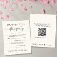 Lança-creme leve ou anúncio privado de casamento e recepção de casamento ou convite de festas de celebração. A frente apresenta "Felizmente, Nunca Depois da Festa" em uma mistura de simples tipografia e uma escrita elegante com pestanas. Personalize sua mensagem e convite com mais detalhes e adicione seus nomes em um script semelhante a assinatura. No verso, adicione seu endereço de site de casamento para criar um código QR para os convidados pesquisarem para acompanhar suas fotos de casamento, todos os detalhes e para RSVP on-line, e adicione seus primeiros nomes e datas de casamento e recepção.