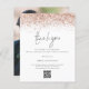 Um valor para o alternativo do ORÇAMENTO em tamanho menor de 4,5 x 5,6" de semirbrilho de 110 lbs, que é de espessura semelhante a um cartão postal (no entanto, não é adequado para uso como cartão postal). POR FAVOR, NOTE que existe UM por folha. Código QR de Casamento Glitter Dourado Rosa de Orçamento Obrigado. Adicione seu código QR à galeria de fotos de casamento no verso substituindo o código QR na amostra. Você pode criar códigos QR gratuitamente on-line. Basta pesquisar "Criador de código QR" e muitas opções surgem para criar gratuitamente. Um toque de vidro com uma borda de cima falsa e brilhante em rosa gold e um script de estilo de escrita de na moda definido para Obrigado. No verso, substitua a imagem por sua favorita do dia como guardiã para seus convidados. Personalize facilmente o resto do texto com sua mensagem e nomes.
