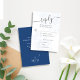 Faça o planejamento de casamento sem esforço com este cartão RSVP de casamento azul com um elegante design floral e opções clássicas de refeição. O estilo do eterno inclui um código QR para fácil acesso ao seu site de casamento, permitindo que os hóspedes respondam on-line com a opção de refeição selecionada. Perfeito para casais que amam um toque clássico e tradicional, este cartão de resposta combina beleza e praticidade enquanto mantém seu dia especial bem organizado.
