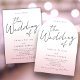Para qualquer necessidade especial de design, sinta-se à vontade para entrar em contato diretamente com o designer, enviando um e-mail para choosehappystudio@yahoo.com Este convite de casamento moderno e minimalista apresenta uma frente elegante de roteiro. Ele toca com a simplicidade de um design de tipografia preto-e-branco, acrescentando apenas uma dica de cor rosa poeirenta rosa. No verso do convite você pode adicionar as informações do seu site de casamento, bem como um código QR para seus convidados digitalizarem. É a escolha perfeita para casais que apreciam elegância limpa e moderna.