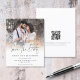 OBSERVE QUE Existem duas opções de papel para escolher para este tamanho (4,5 x 5,6”) na faixa de orçamento. Para este produto, eu recomendo altamente o semi-brilho, que é um cartão de 110 gsm, semelhante em espessura a um cartão postal. A opção Satin é um papel muito mais fino, 80 gsm. O padrão é definido como semi-brilho. ***OBSERVE QUE há um convite por folha. Orçamento de Casamento Save The Date com Código QR de Foto. Com um código QR no verso para o site do seu casamento, para que seus convidados possam facilmente visitar seu site de casamento. Seu código QR será gerado automaticamente para atualizar o código de exemplo no design, quando você simplesmente alterar a URL de exemplo no modelo com a URL do seu próprio site de casamento. O Save The Date está em um script elegante. Substitua a foto de exemplo pela sua favorita e personalize o restante do texto