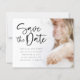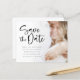 Código QR de Foto do Script de Casamento de Orçamento Salve a Data. Um alternativo de 4,5 pol x 5,6 pol com preço inferior. Disponível em um STOCK DE CARTÃO SEMI-GLOSS 110 lb, que é a opção padrão (mais espesso para convites), OU um STOCK de PAPEL THINNER FINISH 80 lb FINISH (ideal para gabinetes). Basta substituir o exemplo de foto pelo seu favorito, que está no lado direito. Uma camada de camada de gradiente está sobre a sua foto, de modo que ela desaparece à medida que ela chega ao centro com o texto parcialmente sobreposto no topo. Salvar A data está em um script informal de conjunto em negrito e personaliza facilmente o resto do texto. Se você tiver um site de casamento, adicione seu código QR ao seu site de casamento no verso substituindo o código QR na amostra ou exclua esse código e texto se não for necessário por meio de personalização adicional. Você pode criar códigos QR gratuitamente on-line. Basta pesquisar "Criador de código QR" e muitas opções surgem para criar gratuitamente.