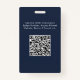 Crachá de identificação profissional azul com a foto de seu funcionário em um círculo, seu nome em um script branco chic, seu título em letras brancas limpas e o logotipo de sua empresa ou organização. No verso, adicione qualquer informação adicional e um código QR opcional.