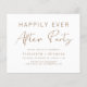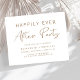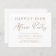 Casamento mínimo e chic amigável após convite de festas para um elogio poste ou celebração de casamento. "Felizmente, sempre depois da festa" é escrito numa mistura de tipografia simples de ouro e uma elegante escrita de ouro moderna. No verso, introduza o endereço do Web site do casamento para criar um código QR que os seus convidados podem analisar para RSVP online e obter detalhes adicionais. Este papel semirbrilhante do orçamento é semelhante em peso ao papel fotográfico. Uma versão tradicional do estoque do cartão também está disponível (mensagem para o link).