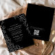 Apresente seu casamento com um convite minimalista elegante, moderno, preto e branco, com um conveniente código QR. O design puro e monocromático expele sofisticação e elegância, perfeito para casais que buscam uma estética contemporânea e refinada. O código QR adiciona um toque funcional, permitindo que os convidados acessem facilmente detalhes como RSVPs, instruções e atualizações de eventos. Ideal para um casamento moderno ou minimalista, esse convite combina estilo com conveniência, dando o tom para uma celebração chique e organizada.