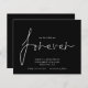 O Código QR Que Decidimos Para O Preto Salvar A Data. Um alternativo de 4,5 pol x 5,6 pol com preço inferior. Disponível em um STOCK DE CARTÃO SEMI-GLOSS 110 lb, que é a opção padrão (mais espesso para convites), OU um STOCK de PAPEL THINNER FINISH 80 lb FINISH (ideal para gabinetes). Adicione seu código QR ao seu site de casamento no verso substituindo o código QR na amostra. Tipografia branca no clássico design preto para convidar seus convidados para salvar seu encontro. Decidimos no Forever que está em um script de na moda está no centro. O resto do texto que você pode personalizar facilmente. As cores de texto e de fundo podem ser alteradas se você quiser se adequar melhor ao seu tema de casamento através da opção personalizar mais.